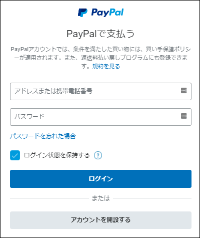 PayPalアカウントをお持ちの方は、通常通りにログインして、お支払いをすすめてください。